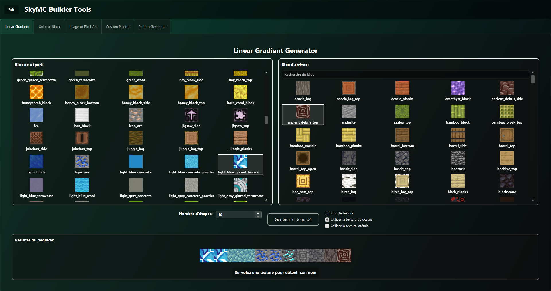 Adaptation web de SkymcDB, pour élargir l'audience, permettant des fonctionnalitées inédites dans le domaine du build Minecraft