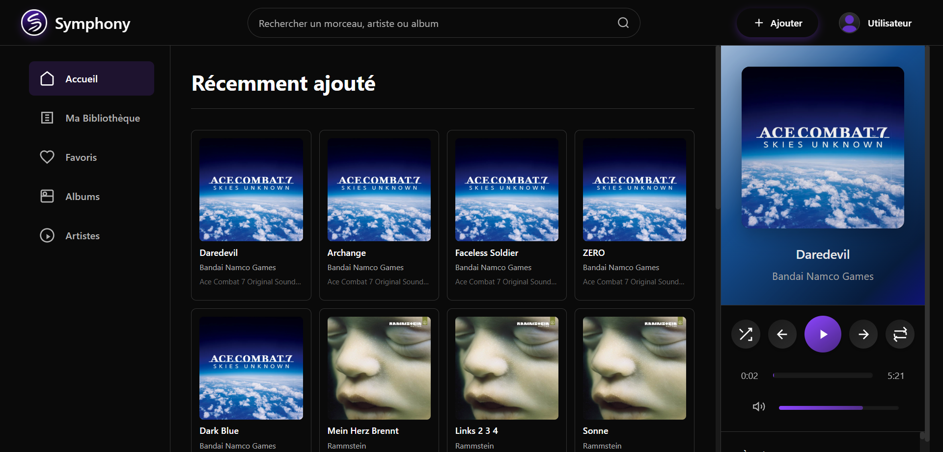 Application web permettant aux utilisateurs d'heberger et lire leurs musiques ainsi que les autres publiées sur le Symphony.